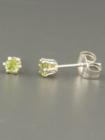 Peridot Earrings – Sterling Silver stud – 3mm stones – P503