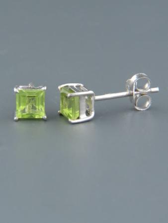This Sterling Silver stud style earrings features square faceted Peridot stones.