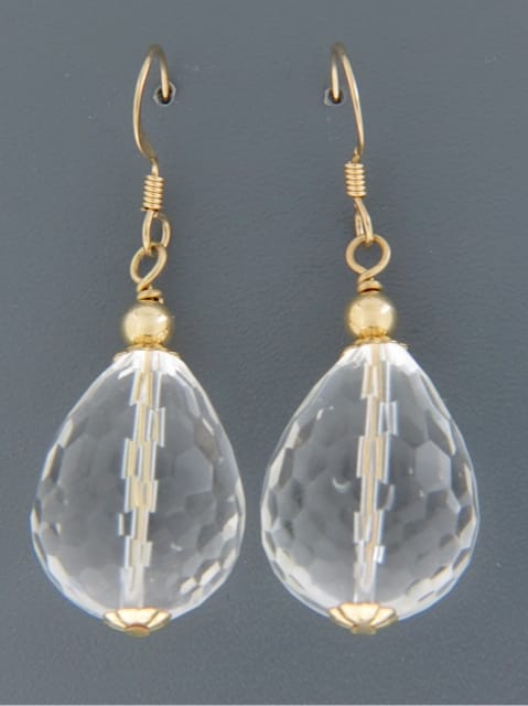 These Gold drop style earrings feature faceted, briolette Clear Quartz Crystal stones.