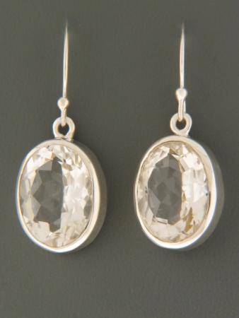 These Sterling Silver drop-style earrings feature oval-shaped Clear Quartz Crystal stones.