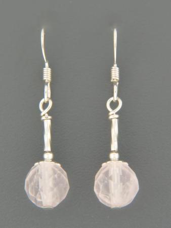 A drop style earring featuring round faceted Rose Quartz stones with Silver beads.