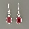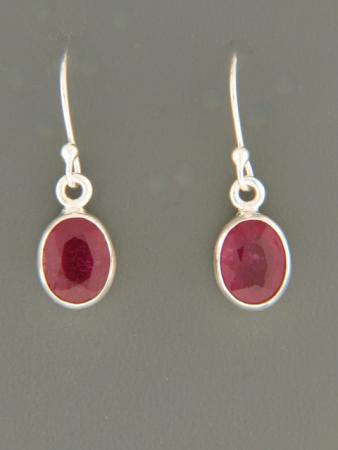 These Sterling Silver drop style earrings feature faceted, oval shaped natural Ruby stones.