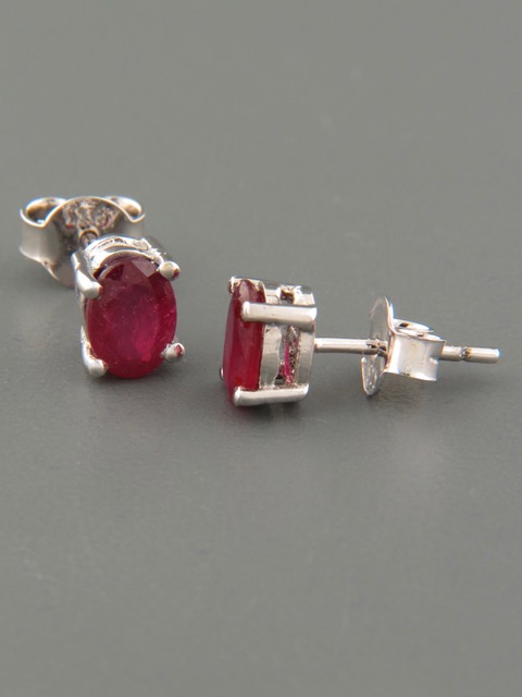 These Sterling Silver stud style earrings feature oval faceted natural Ruby stones.