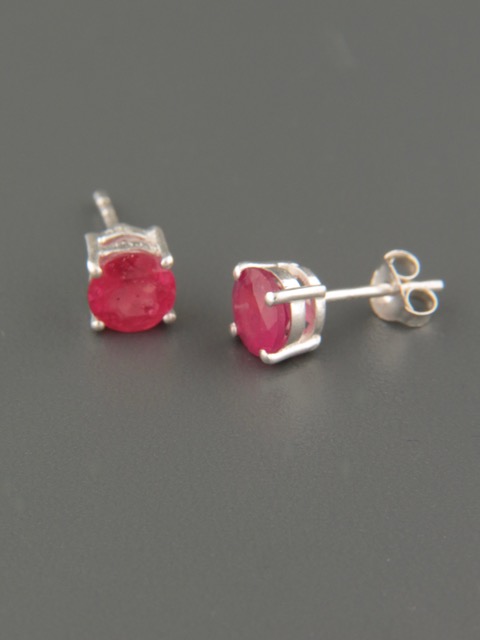 Ruby Earrings - Sterling Silver stud - 6mm stones - R511