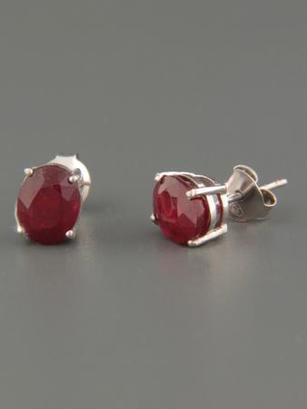 These Sterling Silver stud style earrings feature faceted, oval shaped natural Ruby stones.