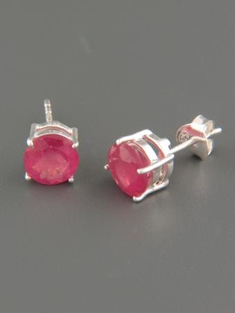 These Sterling Silver stud style earrings feature round, faceted Ruby stones.