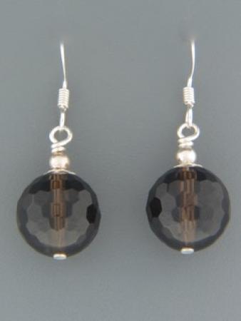 These Sterling Silver drop style earrings feature round faceted Smokey Quartz stone beads.
