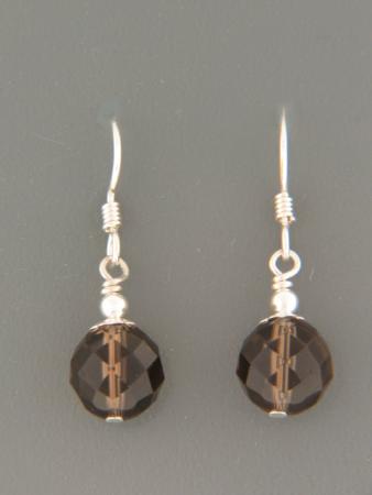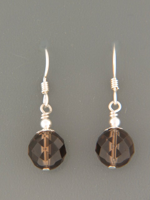 A drop style earring featuring round faceted Smokey Quartz stones with Sterling Silver beads.