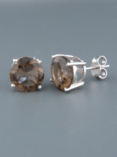 These Sterling Silver stud style earrings feature round faceted Smokey Quartz stones.
