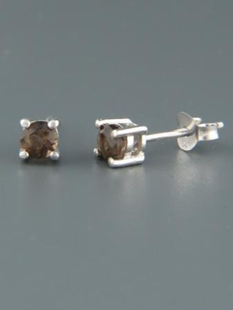 These Sterling Silver stud style earrings feature round faceted Smokey Quartz stones.
