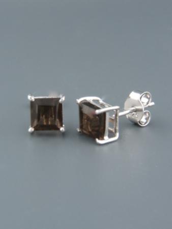 These Sterling Silver stud style earrings feature square faceted Smokey Quartz stones.