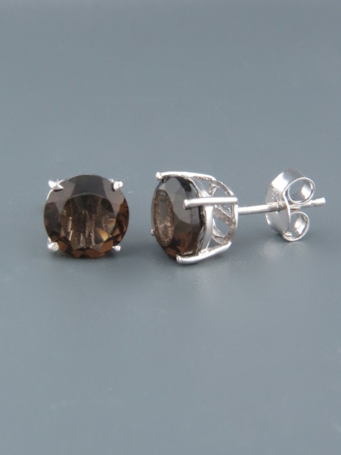These Sterling Silver stud style earrings feature round faceted Smokey Quartz stones.