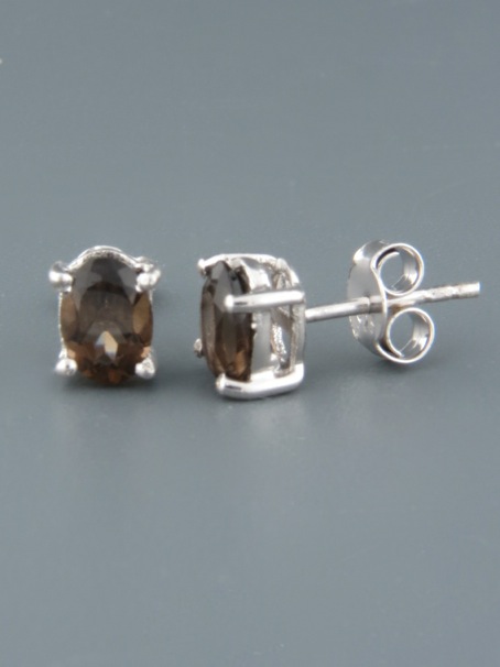These Sterling Silver stud earrings feature oval faceted Smokey Quartz stones.