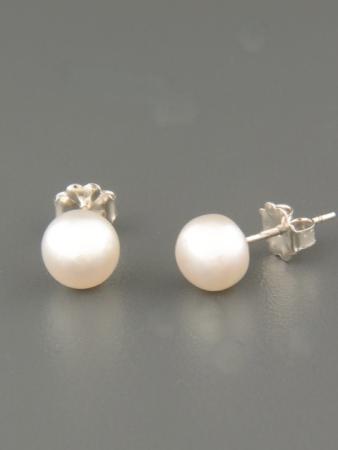 6mm White Pacific Pearl stud Earrings – Sterling Silver – YW6ZS