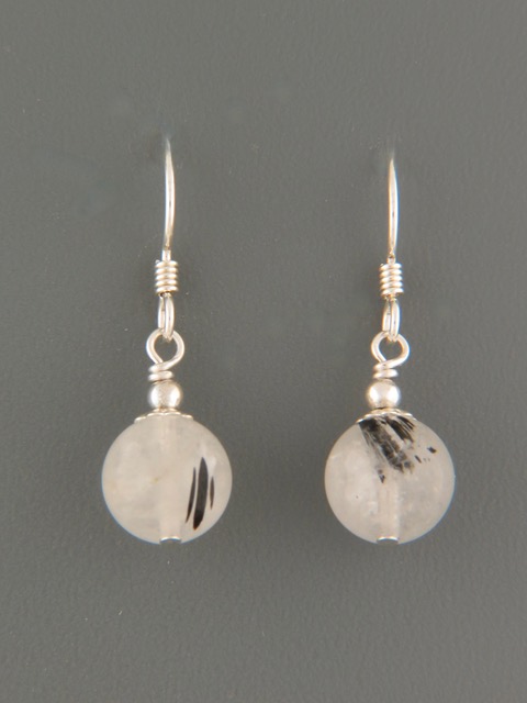 These Sterling Silver drop style earrings feature round Tourmalinated Quartz stone beads.