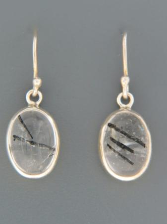 These Sterling Silver drop style earrings feature oval Tourmalinated Quartz cabochons.