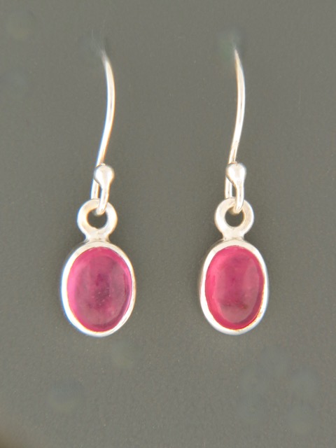 These Sterling Silver drop style earrings feature oval shaped Pink Tourmaline (Rubellite) cabochons.