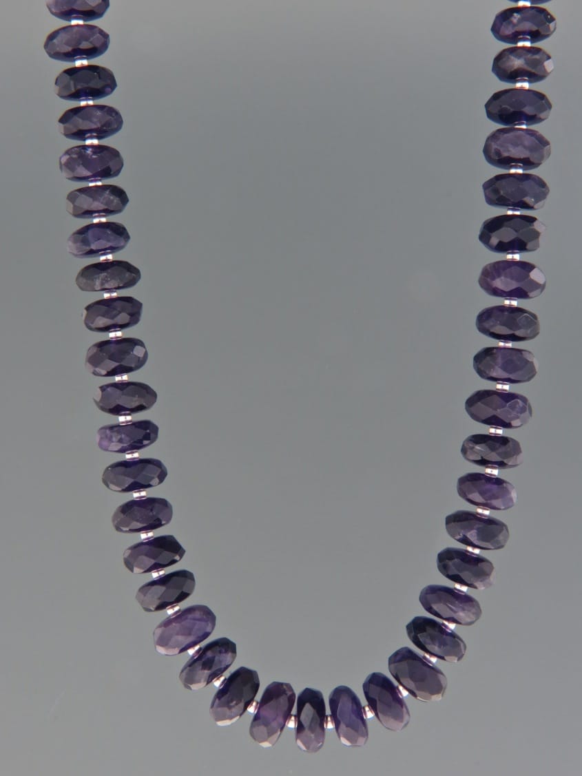 Amethyst Necklace – faceted roundels with Silver beads – A125
