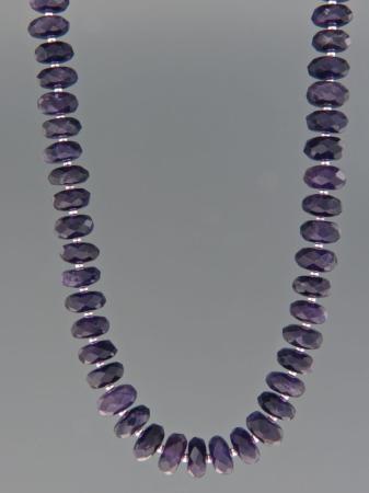 This necklace features faceted Amethyst roundels with Sterling Silver beads.
