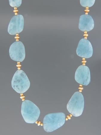 Aquamarine Necklace - irregular facets with gold beads - 50cm - AQ030