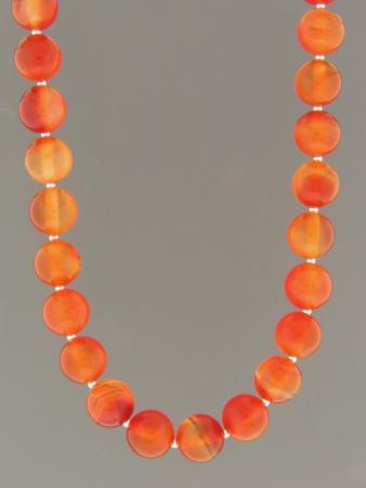 This necklace features round, smooth polished Carnelian stone beads with 2mm round Sterling Silver beads.