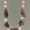 This necklace features freeform shaped, hand faceted Citrine and Smokey Quartz stone beads with Gold beads and clasp.