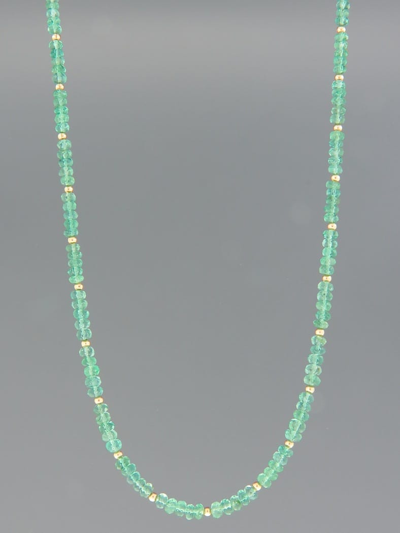 Emerald Necklace – faceted roundels with gold beads & chain – E040
