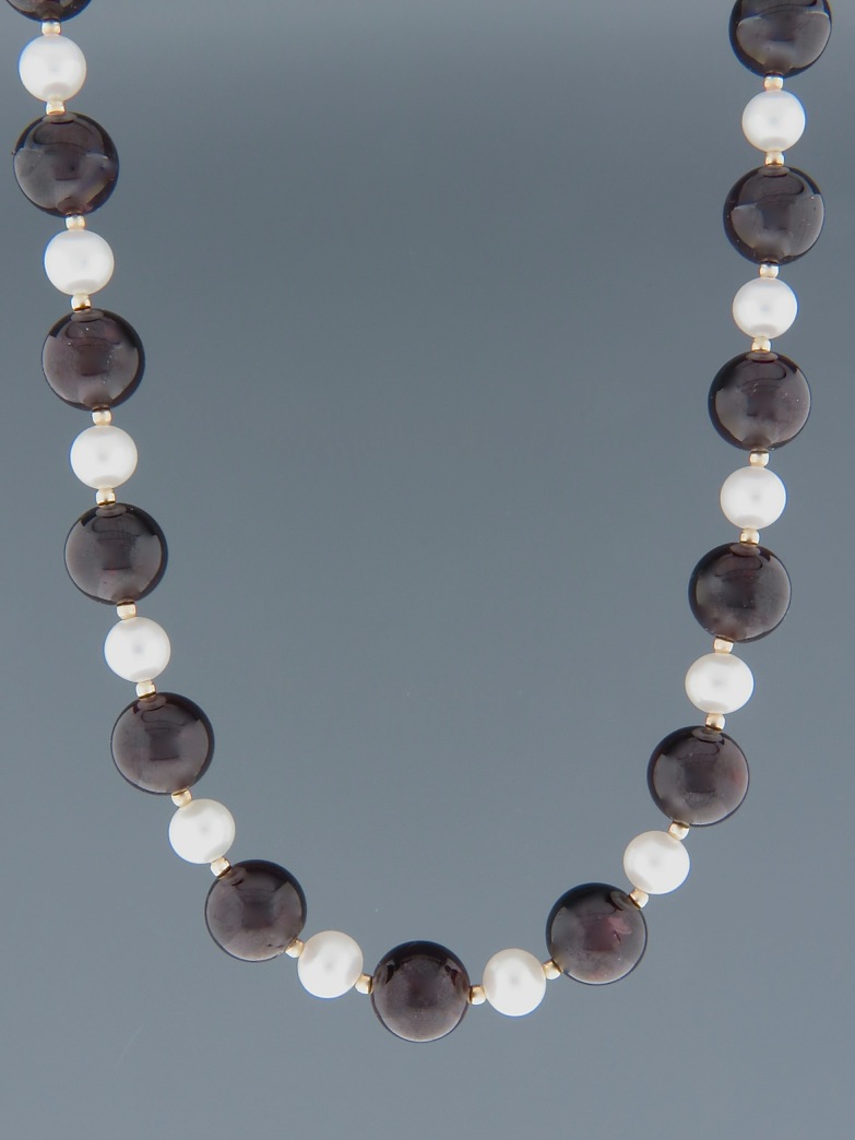 Garnet & Pearl Necklace - 10mm round stones - 50cm - G044
