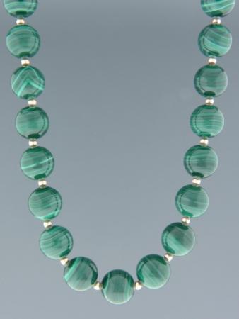 Malachite Necklace - 12mm round stones with Gold beads - M001