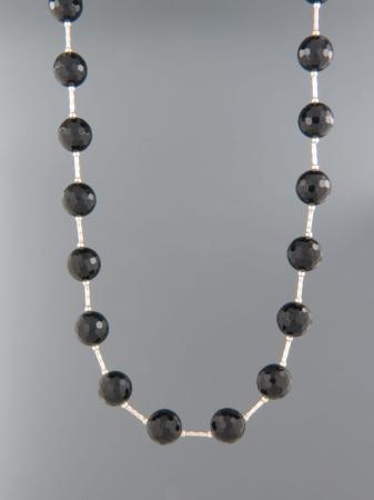 Onyx Necklace - 10mm stones with Silver twist beads - OX094