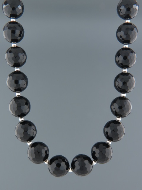 Onyx Necklace – 14mm round faceted stones with Silver beads – OX106
