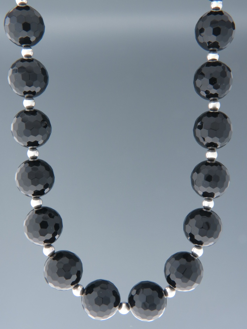 Onyx Necklace – 16mm round faceted stones with Silver beads – OX107