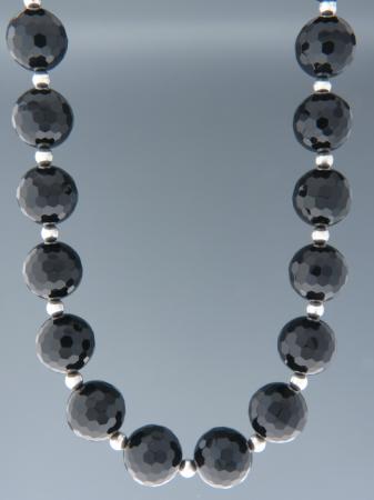 Onyx Necklace - 16mm round faceted stones with Silver beads - OX107
