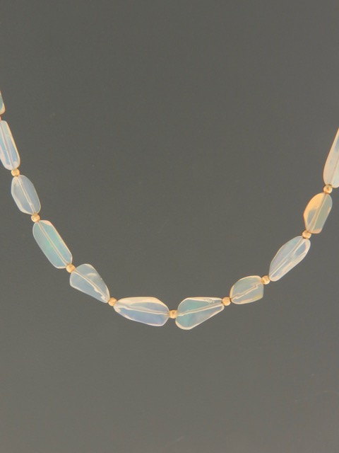 Ethiopian Welo White Opal Necklace with Gold beads - OP003