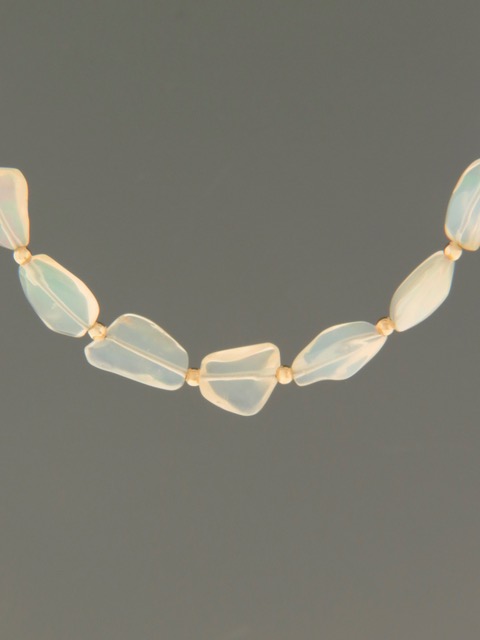 Ethiopian Welo White Opal Necklace with Gold beads – OP008