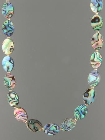 Paua Shell Necklace – 10 x 14mm oval with Gold beads – PA004