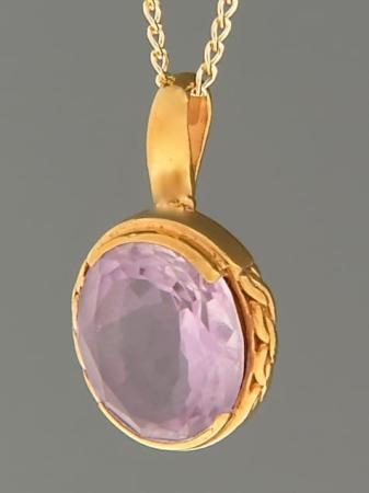 This Gold Vermeilpendant features an oval faceted Amethyst stone.