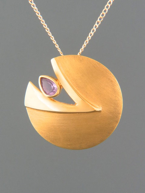 This polished and brush-finished Gold Vermeilpendant features a teardrop faceted Amethyst stone.