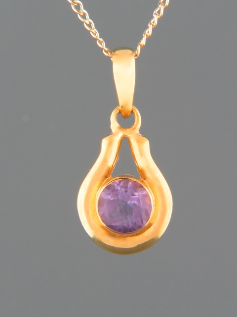 This Gold Vermeilpendant features a round faceted Amethyst stone.