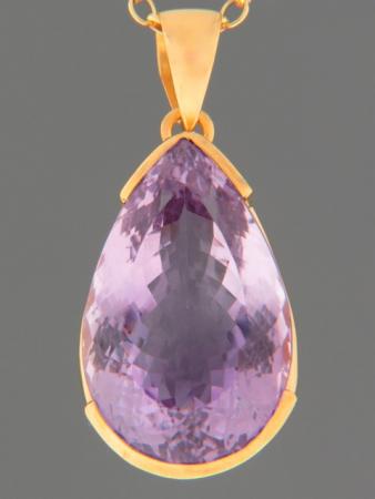 This Gold Vermeilpendant features a large, narrow, faceted teardrop-shaped Amethyst stone.