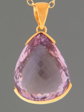 This Gold Vermeilpendant features a large, clear, fully faceted teardrop-shaped Amethyst stone.