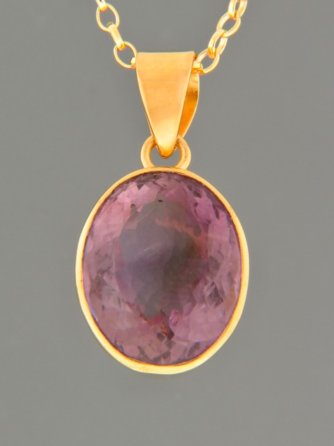 This Gold Vermeilpendant features an oval-shaped, faceted Amethyst stone.