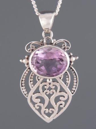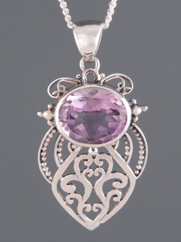 This Sterling Silver pendant features an oval faceted Amethyst stone.