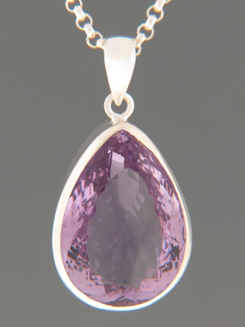 This Sterling Silver pendant features a teardrop-shaped, faceted Amethyst stone.