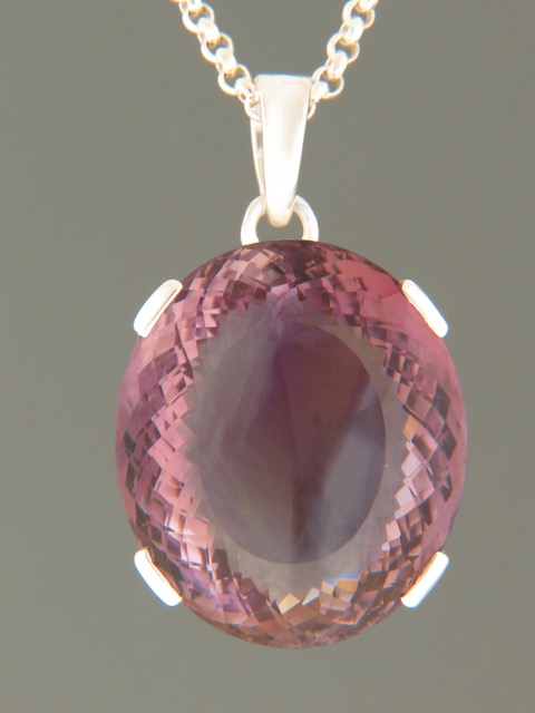This Sterling Silver pendant features a very large, beautifully faceted, oval shaped Amethyst stone.