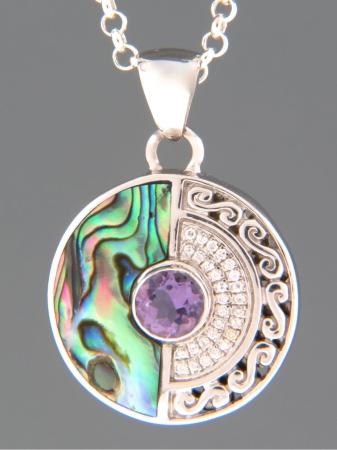 Paua Shell, Amethyst & Zircon Pendant – PA367