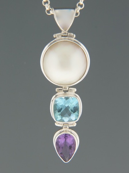 Pearl, Blue Topaz & Amethyst Pendant – Sterling Silver – X301