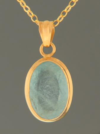 This Gold Vermeilpendant features an oval shaped, faceted Aquamarine stone.