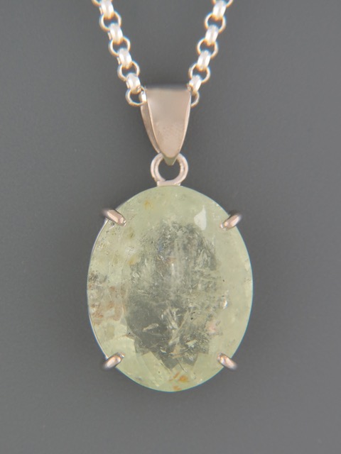 This Sterling Silver pendant features an oval faceted yellow/green Aquamarine stone.