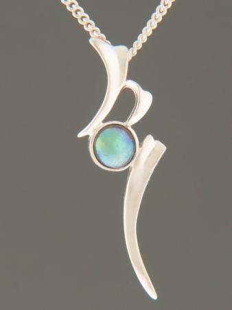 This Sterling Silver pendant features a New Zealand Blue Pearl grown in the local Paua shellfish showing green and blue colours.